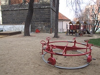 Vybavení: pískoviště s pojízdným krytem, pružinové houpadlo (autíčko), prolézačka se skluzavkou a lezecí stěnou, šlapací kolotoč