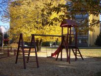 Vybavení: pískoviště, hrad se skluzavkou a prolézačkou, závěsná houpačka, tabule, malá stěna na lezení a žebřík